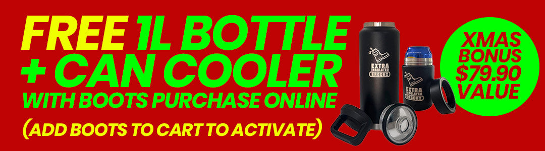 Includes Boots, Insoles (pre-installed in boots), SIX pairs of socks, 1L Bottle & Cap + free shipping / returns / size exchange (if product unworn).