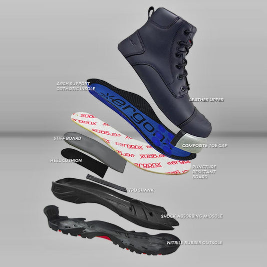 The Ergonx Work Boots Range are engeneered to work with the your foots natural biomechanics.