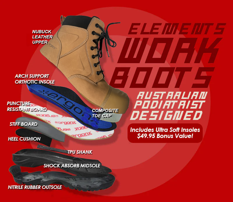 Relieve Plantar Fasciitis, Aching Arches, Foot Pain & Knee Pain with our Australian Podiatrist Designed Safety Boots!