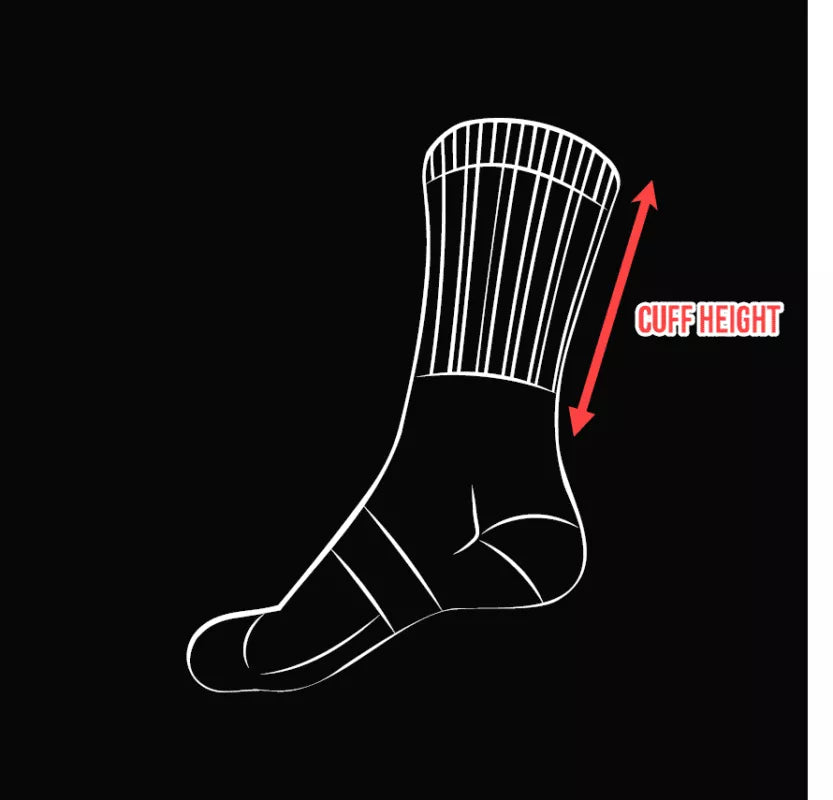 By holding the sock up, a cuff can help to maintain a proper fit and prevent discomfort and injury. It can also help to keep the foot and ankle area covered and protected, reducing the risk of exposure to the elements, debris, and other hazards that can cause foot injuries.
